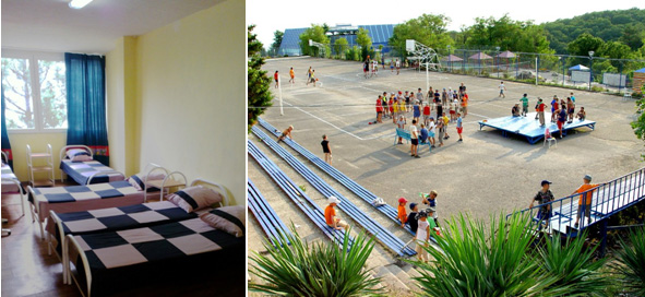 Инфраструктура. P4-х местные номера со всеми удобствами (туалет, ванна, раковина, 2 шкафа для одежды, балкон), море в 3-х минутах от пансионата, собственный оборудованный пляж (мелкая галька),P детские и спортивные площадки, теннисный корт для активного отдыха на свежем воздухе.